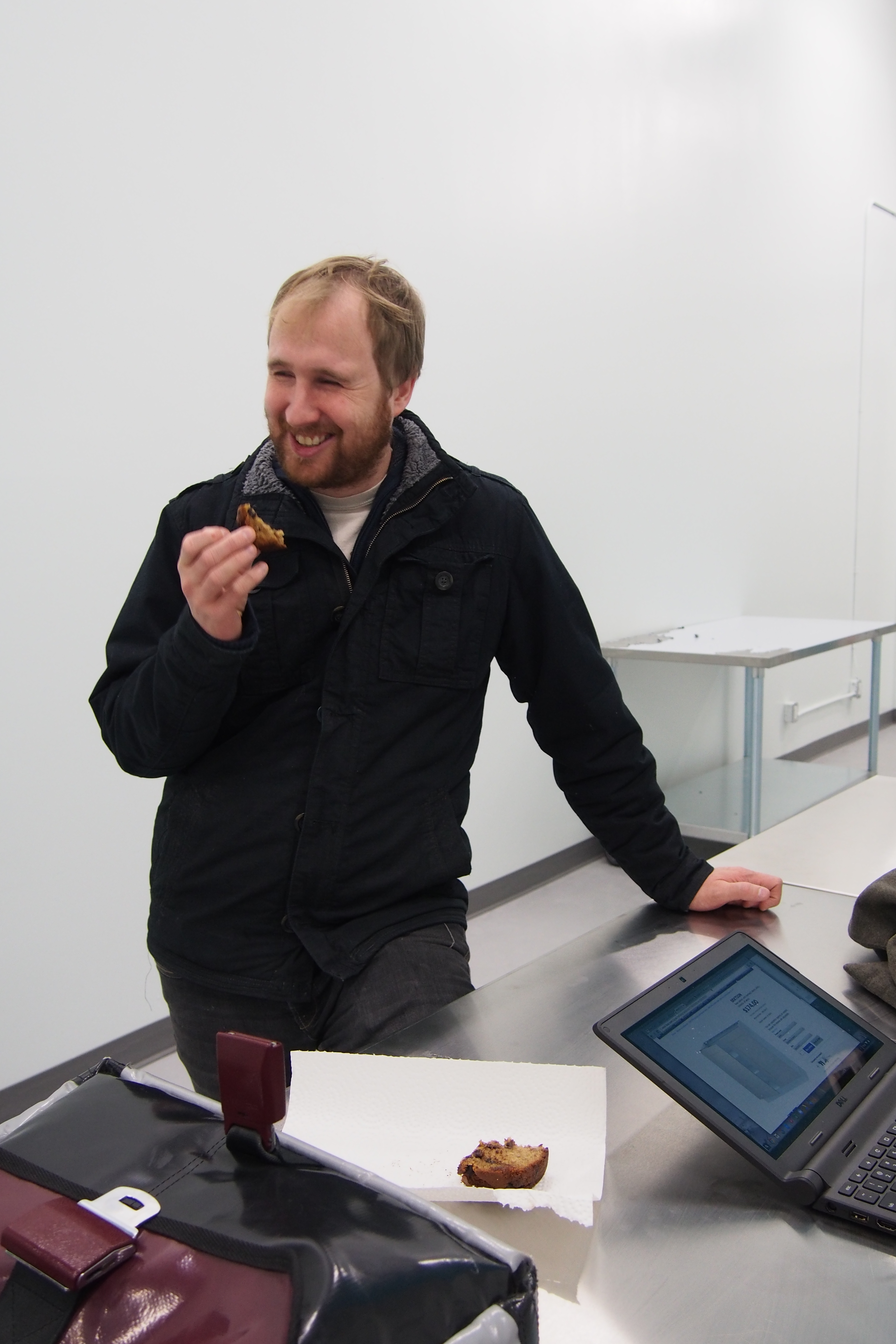 January 29, 2016January 29, 2016 by thecauldronkitchen Cauldron Photos Dave, co-founder, eating a piece of banana bread
