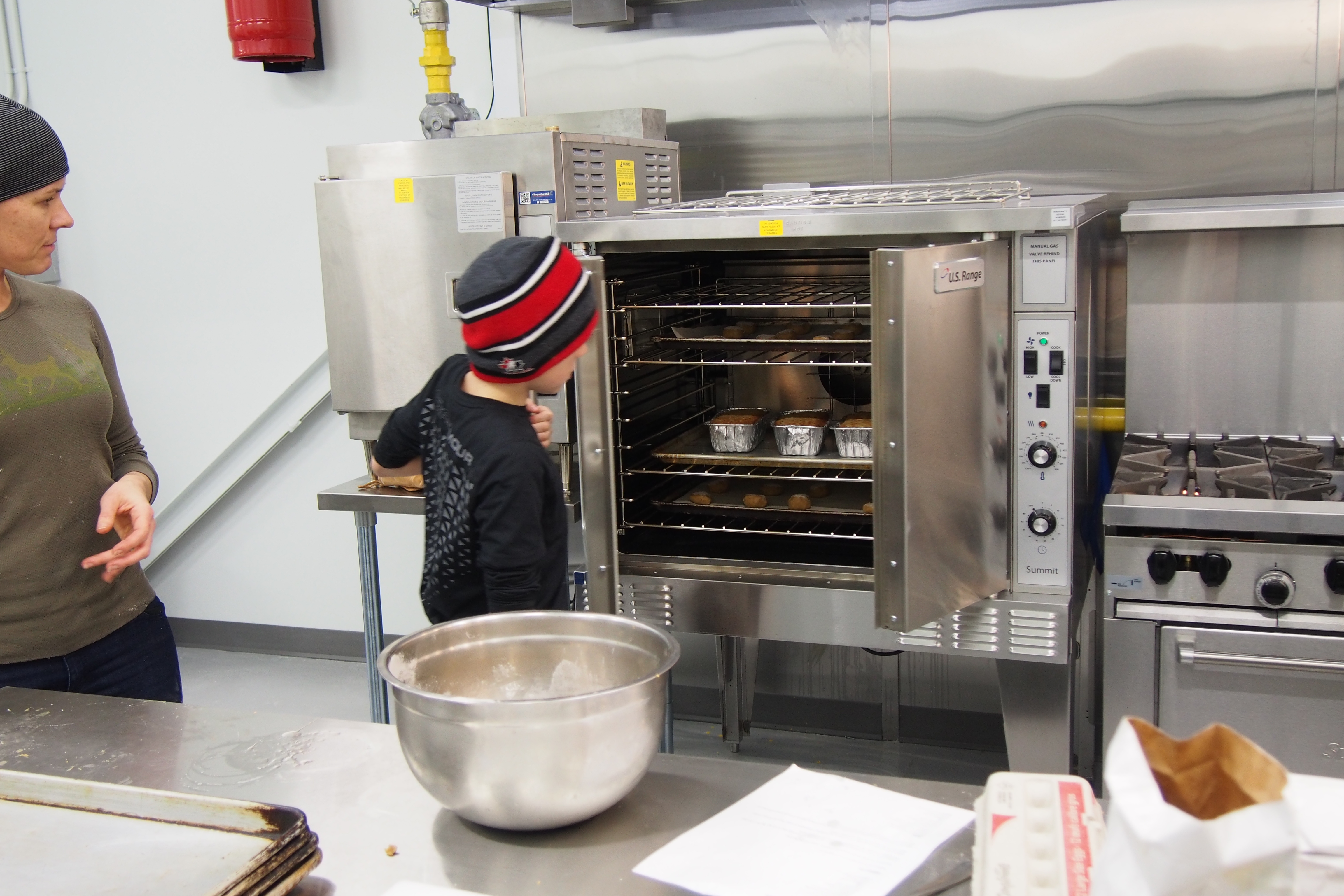 January 29, 2016January 29, 2016 by thecauldronkitchen Cauldron Photos a young boy and woman in front of open oven with baked goods inside