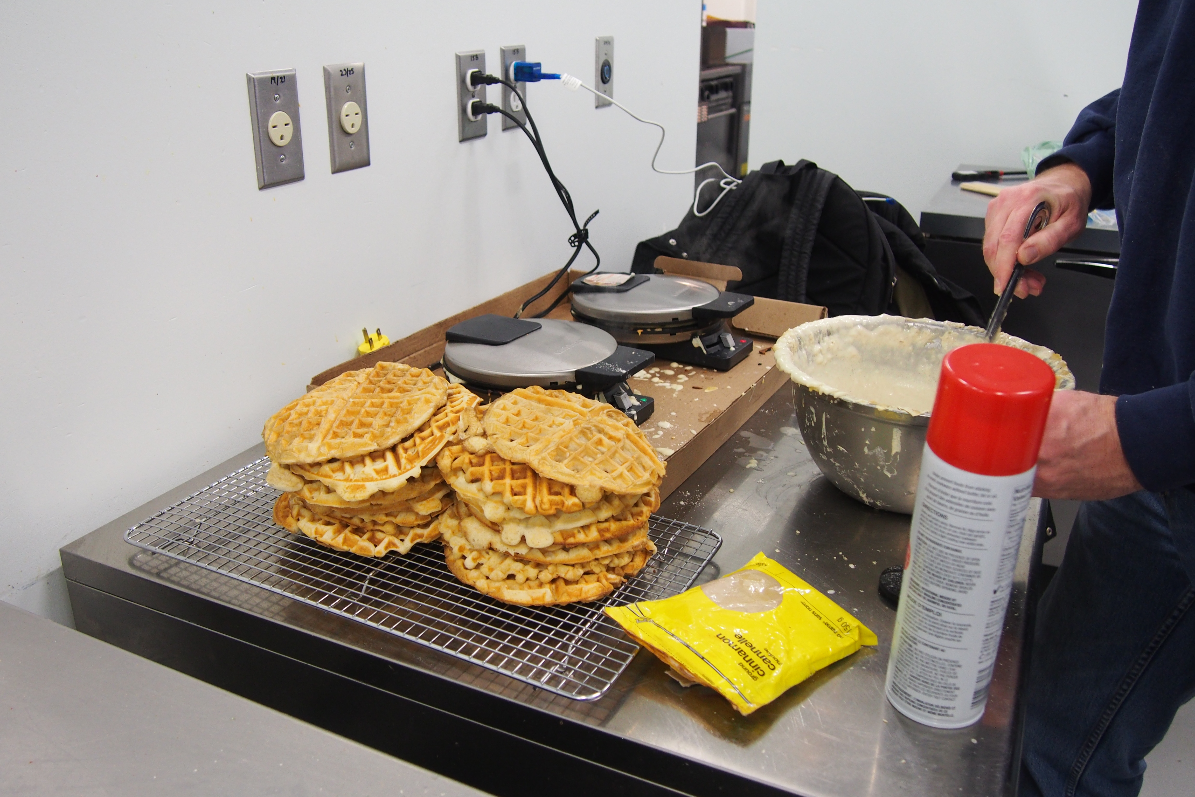 February 19, 2017February 19, 2017 by thecauldronkitchen Cauldron Photo Detroit Soul Food waffles stacking up for the first orders of the day.